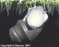 Paramelania damoni, Lake Tanganyiks. Photos of living snails courtesy of Gerald Depaus. Some of the "thalassoid" (resembling marine snails, from Greek Thalassa, sea) species pictured in Pilsbry and Bequaert (1927), included courtesy American Museum of Natural History: