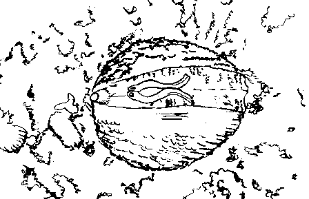Rough approximation of mantle flap motion in gravid female Lampsilis cardium Rafinesque, 1820, the "grandmaw" or "plain pocketbook", observed in very shallow river in Southwest Missouri, late afternoon, August, 1999.