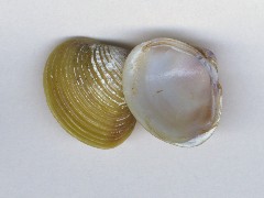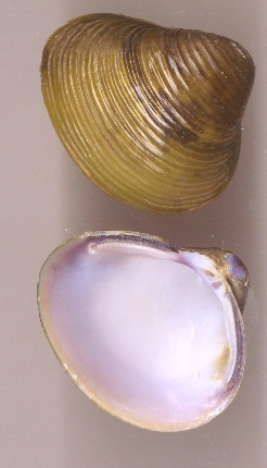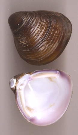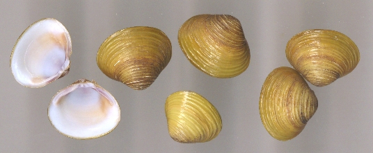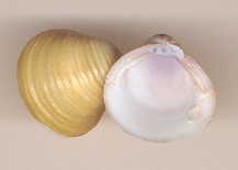 The Corbiculidae are a widespread family of moderate sized clams, often tinged or colored with violet on the interior. The name "corbicula" (little basket, from corbus, basket) refers to their characteristic concentrically ribbed shells and general shape. They are ovoviviparous, brooding internally fertilized eggs in brood pouches. Brood size is large, but the juveniles released into the surroundings are tiny, in contrast to the related sphaeriids. Individuals of Corbicula fluminea (Muller) are unusual in producing only eggs at earliest maturity, followed later by sperm. They then become simultaneously hermaphroditic and remain so throughout their lives (McMahon, 1991). There are twelve genera listed by Banarescu (1990), including several characteristic of brackish waters, and the additional genus Posostrea recently described by Bogan and Bouchet (1998).