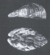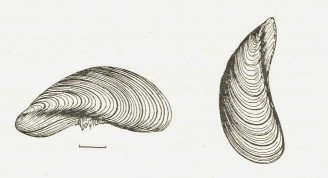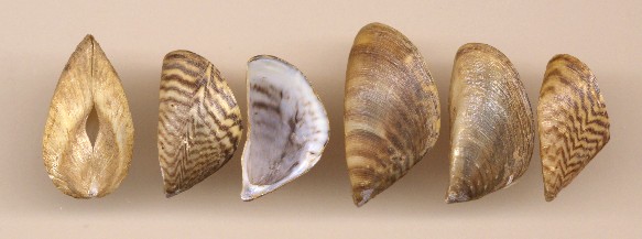 Dreissena polymorpha. Note well-developed siphons, characteristic