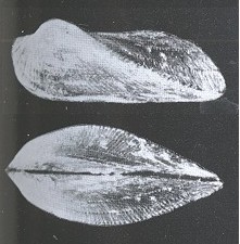 characteristically flattened ventral surface (left) and a gap for the byssal threads.