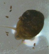 Pachyhydrobia spinosa Poirier, 1881 x4 Note single spine on back of shell. |