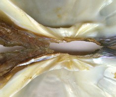 periostracum is greenish in transmitted light. The "ridge"