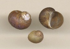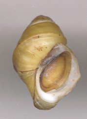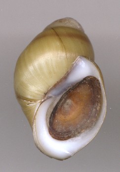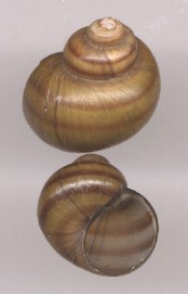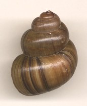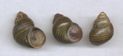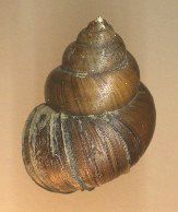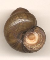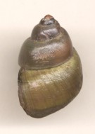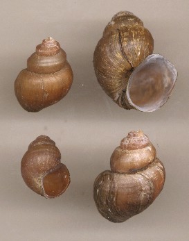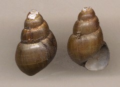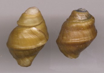 Viviparus georgianus (Lea, 1834), (left), and Campeloma limum (Anthony, 1860), (right). Campeloma has the large