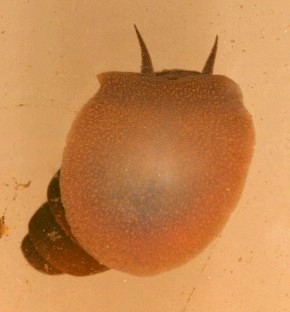 Larina strangei Adams 1854. Queensland, Australia.Hugh Jones of the New South Wales Department of Land & Water Conservation indicates that some of the Viviparidae are endangered in Australia. In particular, Notopala hanleyi and Notopala sublineata from the Murray-Darling drainage. These were thought to be extinct, but a few remnant populations have been rediscovered in irrigation pipelines. They were apparently a problem and the last known population of N. hanleyi may have been eradicated by efforts to clear the pipeline.