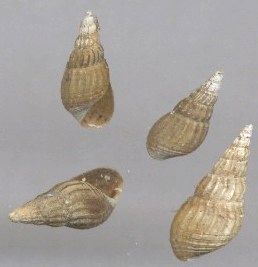 Adult, front and back, and immature individuals, more magnified. Unknown Thiara species,